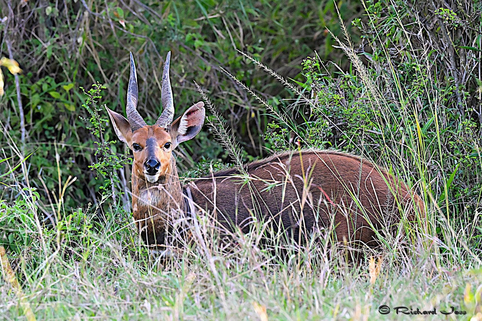 The term Antelope is a catch-all term to describe a very wide collection of different browsing ruminants with even-toed hooves belonging to the Bovidae family. This group excludes cattle, sheep and goats, but does include buffaloes and giraffes. The African antelope family includes some 78 species. All males and females in some species have permanent hollow horns. This feature differentiates them from deer which shed their horns annually.
