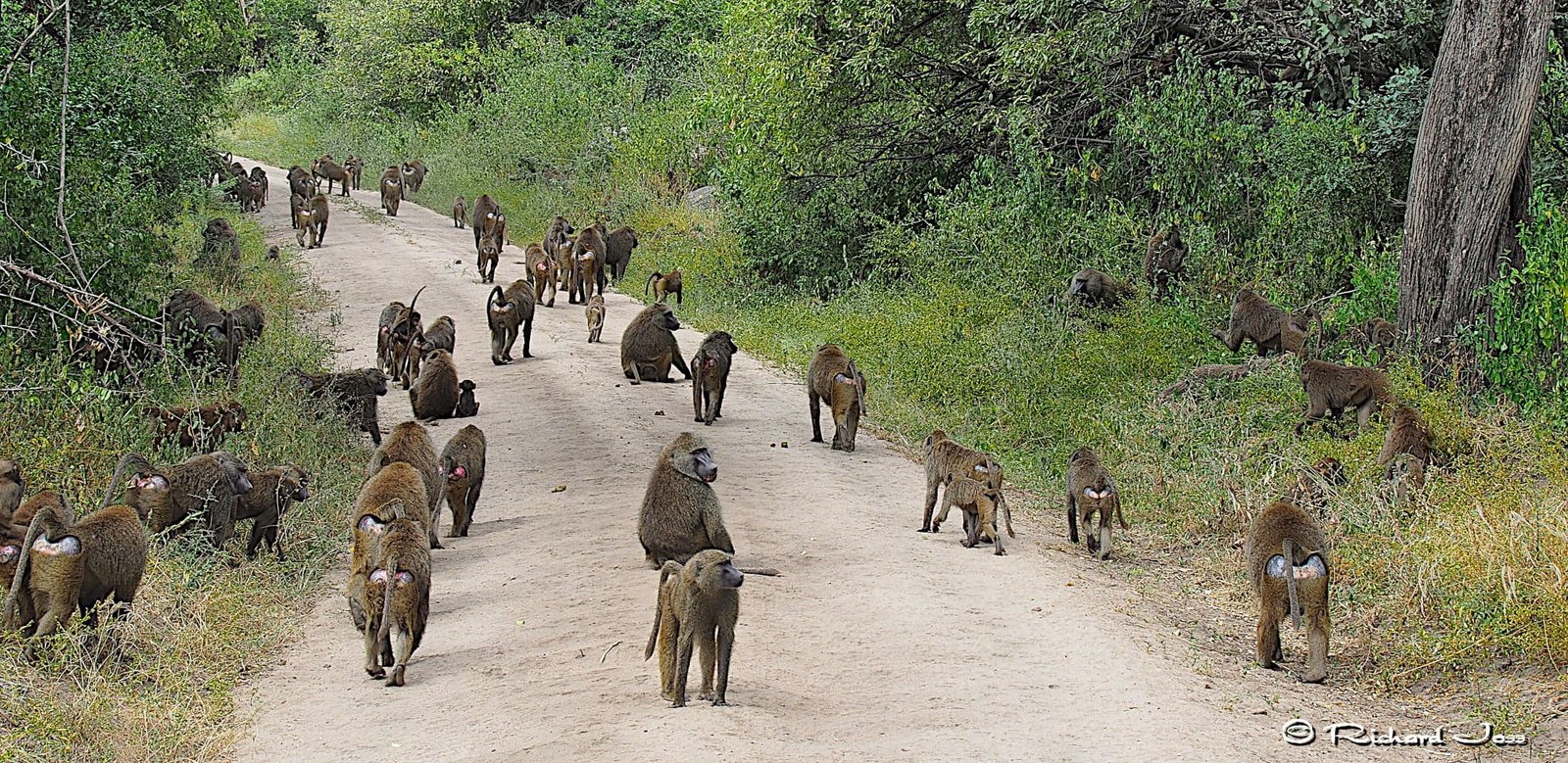 The photo gallery below, however, concentrates on African species from east and southern Africa. The predominant monkeys in the savannah and light forests of these areas, are Olive and Yellow Baboons, with the olive variety (Papio Anubis) being the more numerous. They forage in the grasslands but like to remain close to forest areas where they can sleep in the trees and to a certain extent avoid leopards for whom they are a favourite prey.